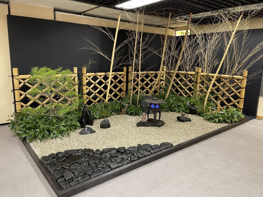山内から切り出した竹穂を材料に使用した力作。庭のトータルプロデュースをしてこそ庭師という代表の理念の下、自社施工を行っている。