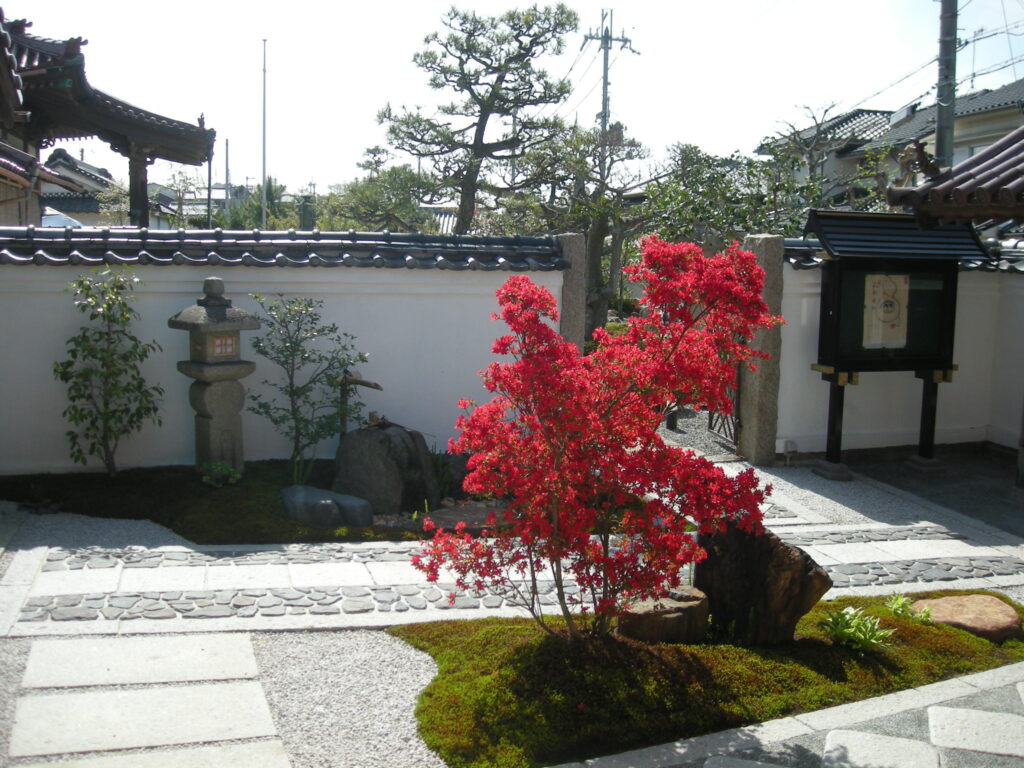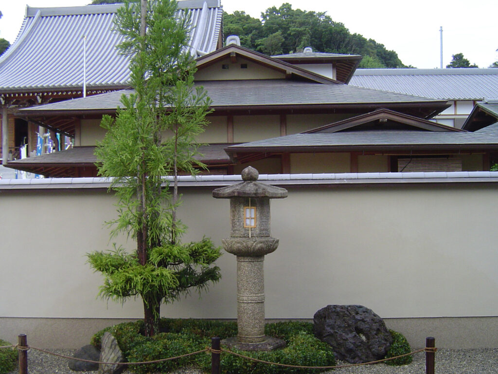淡路島七福神・弁財天。多数の台杉を植栽し、山の風景を表現。本堂前の灯籠は名工・西村金造氏作。