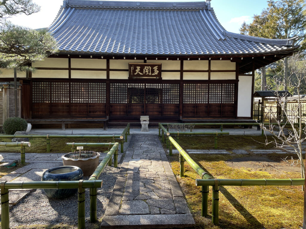 相国寺型灯籠を主景に、京都の銘石を配した有馬頼底管長命名の非公開庭園。
